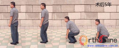 患者目前术后5年,大体观察,行走、蹲起无不适,疗效满意。