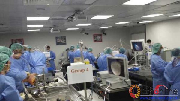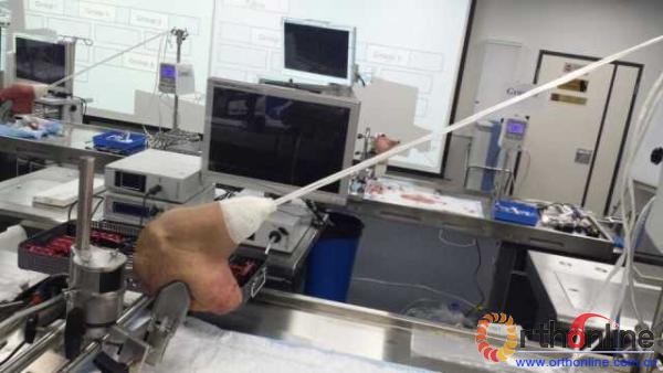 陈世益教授及其团队在香港中文大学肩关节镜外科技术操作培训班上指导学员手术技术操作