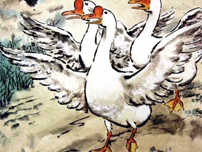 大鹅有我肩膀那么高,见了我这个生人,立刻嘎嘎叫着扑过来,好不生猛。吓得我赶紧躲在父母背后,母亲呵斥几声将鹅赶开,大鹅虽然明白了来者不是敌人,但还是用一副凶狠的眼神紧盯着我,好像在说:“老实点儿,我可看着你呢!”