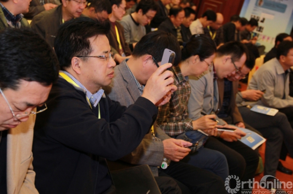现场百位与会人员通过骨科在线微信公众平台进行网络微信互动,提出问题、发表观点,与专家实时沟通交流,气氛热烈。