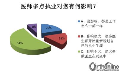 调查结果显示,参与调查的医生中,有86%认为“医师多点执业” 政策好,并对这一政策表示支持;54.4%的医生认为,这一政策对医生影响不大,并对此政策持观望态度。从调查中,我们不难看出,医师多点执业作为医改新政,已受到广大医生的关注和认可。这主要是因为: