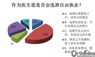 对“是否会选择自由执业?” 调查中,46.3%的被调查者愿意选择自由执业;但26.1%的被调查者,也表示虽然想兼职或自己干,但又怕失去保障。可见,大多医生在实施多点执业,选择自由执业的过程中仍然有所顾忌。