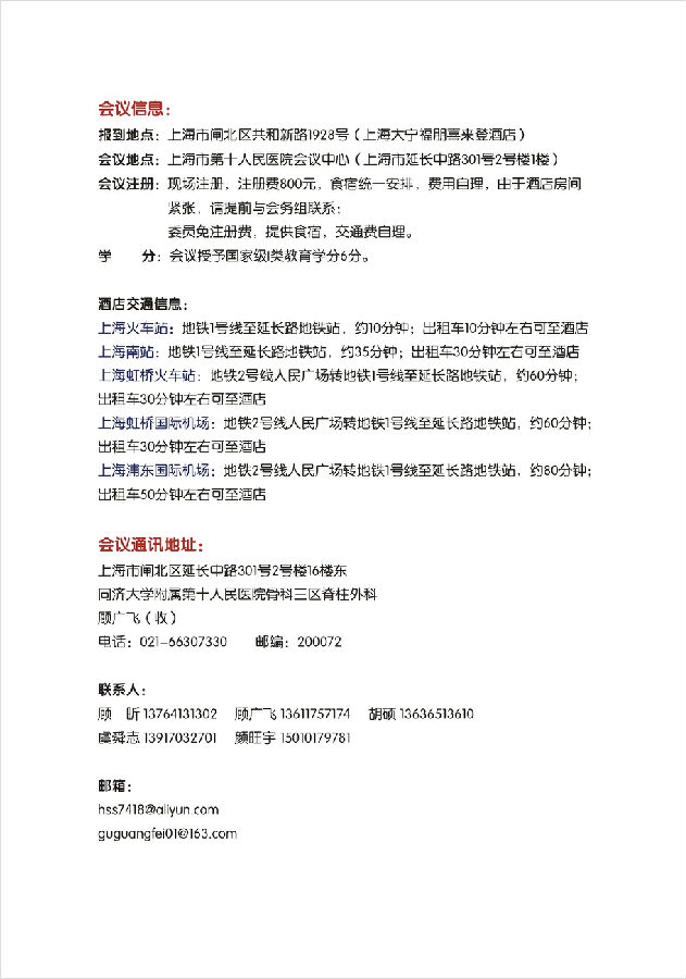 通讯地址:上海市闸北区延长中路301号2号楼16楼东(同济大学附属第十人民医院骨科三区脊柱外科) 顾广飞(收)