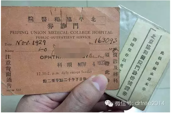(民国时期和建国初期,北京协和医院的门诊挂号券)