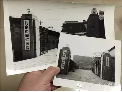 (文革前和文革中分别拍摄的北京同仁医院大门照片。文革中,该院改名为“北京市工农兵医院”)