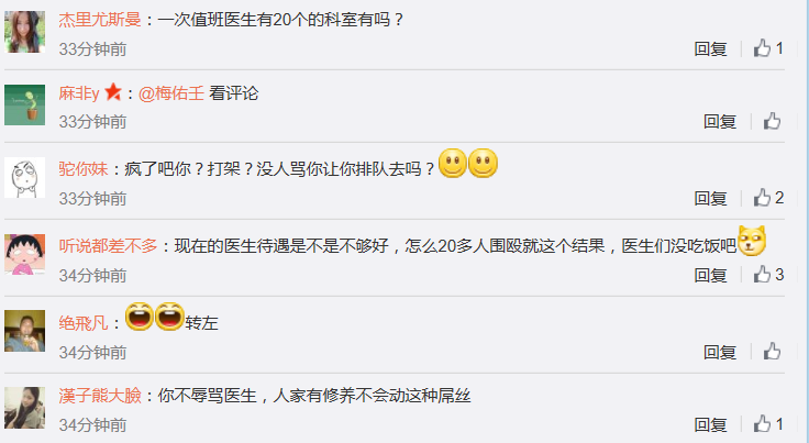 很多网友纷纷对此消息进行质疑。@周ECKHAM 说:别的医院就算了,北京积水潭的医生有空去打架?那门口排的队不得炸了?北京积水潭医院医生@烧伤超人阿宝 也发微博称:据我所知,积水潭医院手外科门诊天天忙的跟打仗似的,你跪地上求医生打你人家都没空。二十几个医务人员这是门诊整整一层楼的医务人员啊,能说说为什么这么多人全部放下工作不做去“打”你吗?