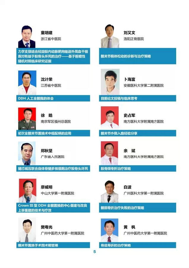 届时将邀请在骨科领域极具影响力的国内外专家对股骨头坏死、髋关节发育不良及髋部周围骨折等热点问题进行大会专题讲座,欢迎各位骨科同道参加。