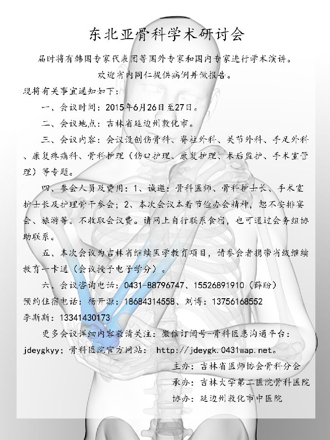 五、本次会议为吉林省继续医学教育项目,请参会者携带省级继续教育一卡通(会议授予电子学分)