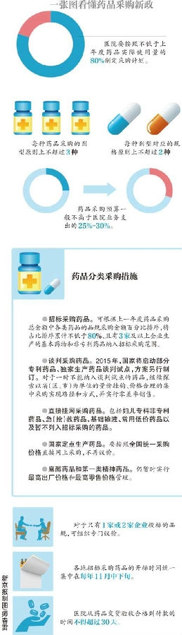 此次改革的亮点是根据药品供应保障情况实行分类采购,公立医院将通过招标采购、谈判采购、医院直接采购、定点生产、特殊药品采购不同方式集中采购药品。