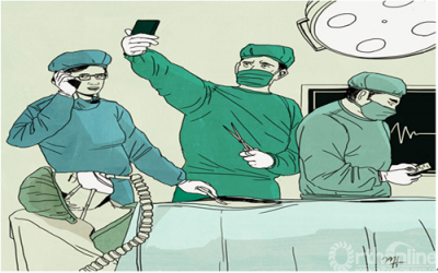 2014年,在曼哈顿约克维尔诊所,一名医生在为喜剧演员琼·里弗斯做手术时一直滑动屏幕翻看手机里的照片。本该顺利完成的咽喉开刀手术失败了,病人的氧气供应中断,于9月4号心脏骤停离世。虽然后来的调查并没有直接表明这次事故和医生使用手机有关,但是医生在手术过程中长时间分心让人不得不警醒。