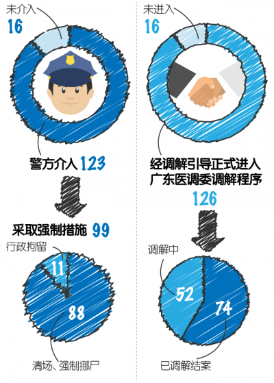 今年上半年,广东和谐医患纠纷人民调解委员会(以下简称“广东医调委”)在广州、佛山、惠州等12个地级市的分支机构应急处理了139起医闹案例。这些医闹基本由医疗纠纷引起,多数本可以通过协商解决问题,但是到最后却演变成难以收场的闹剧,身处其中医疗机构和患者都要承担部分责任。而这些“闹剧”发展背后的逻辑,也颇为值得深思。