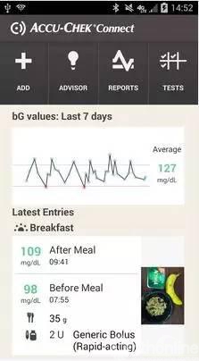 ACCU-CHEK Connect 是一款由Roche Diagnostics开发的糖尿病健康管理app,它能够跟踪用户糖尿病情况,自动转化血糖信息,根据碳水化合物含量和血糖推荐胰岛素治疗用量。