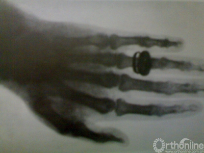 就在这个过程中,奇迹骤然出现:荧光板的后面,清晰地显现出伦琴夫人手指骨骼的影子。接着,伦琴改用照相干版继续实验,取得相同的结果并洗成照片--一个包含戒指的完整手骨影像。这一天,是1895年11月8日。