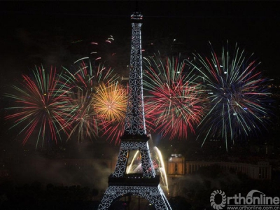 每年还要在香榭丽舍大街上举行大规模的阅兵仪式,燃放大量烟火。入夜,明亮的红、白、蓝三色探照灯光柱交叉摇曳在凯旋门上空,节日的灯火与天空中缤纷的焰火交相辉映,爆竹声与狂欢的乐曲声、欢呼声响成一片。