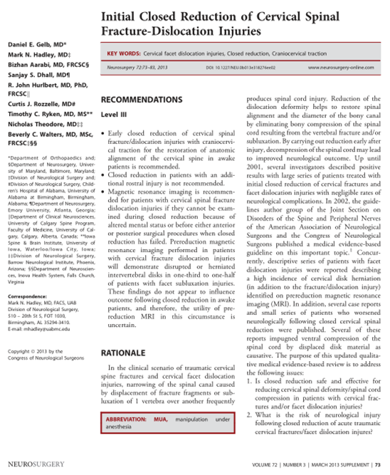 AANS颈脊柱脊髓损伤解读之四:颈椎骨折脱位损伤早期闭合复位