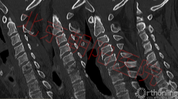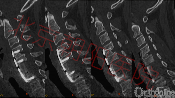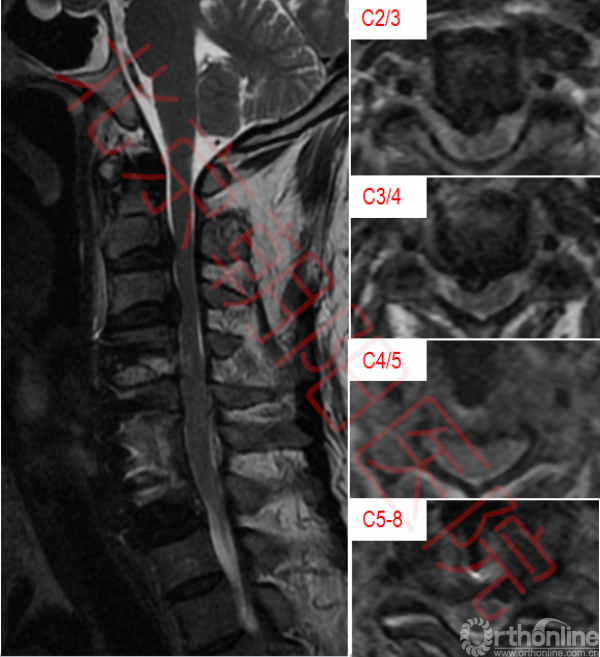 图5:C2/3、C3/4压迫仍存在,植骨节段脊髓压迫较术前明显改善