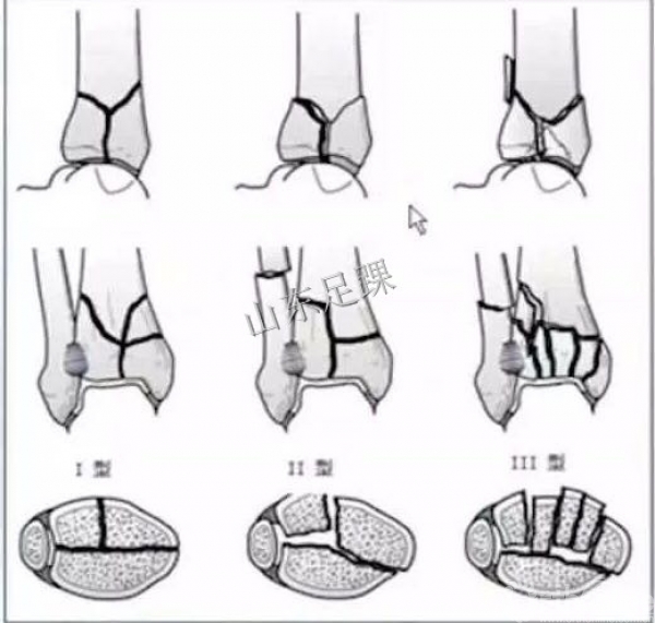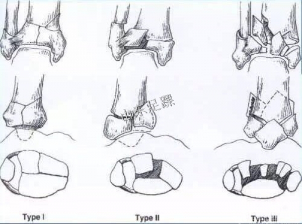该分型以CT为基础,侧重描述胫骨远端关节面的粉碎程度,未涉及干骺端骨折的类型及受伤机制。