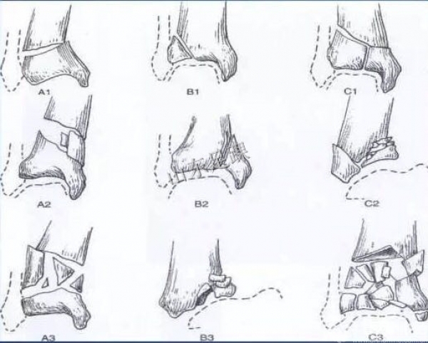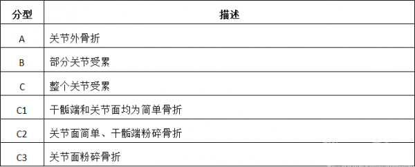 该分型略显粗糙,可描述骨折的严重程度,但对治疗特别是手术治疗的治疗意义有限。
