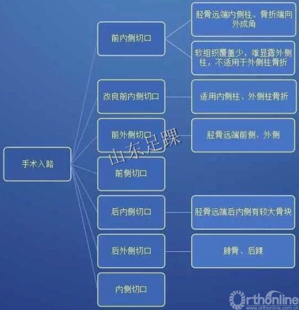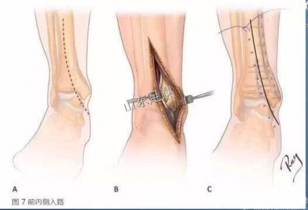 骨折为内翻畸形,选用内侧支撑钢板,使用前内侧入路;