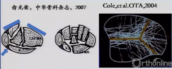 关节面复位要由后向前、由外向内的顺序进行,后方的Volkmann骨块是复位的关键。