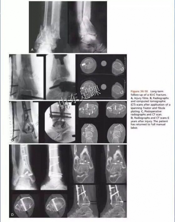 临床手术复杂,并发症常见且严重。一旦治疗失败,常常带来灾难性的后果,如截肢、严重创伤性关节炎后期再关节融合等。