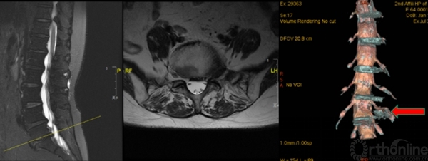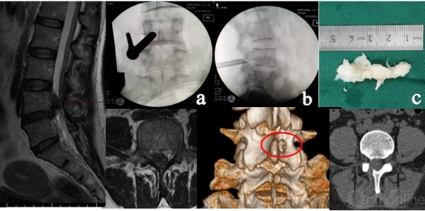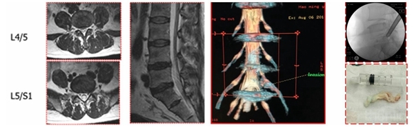 3D-MRI:普通MRI无异常,3D-MRI发现游离髓核,行脊柱内镜取出游离髓核