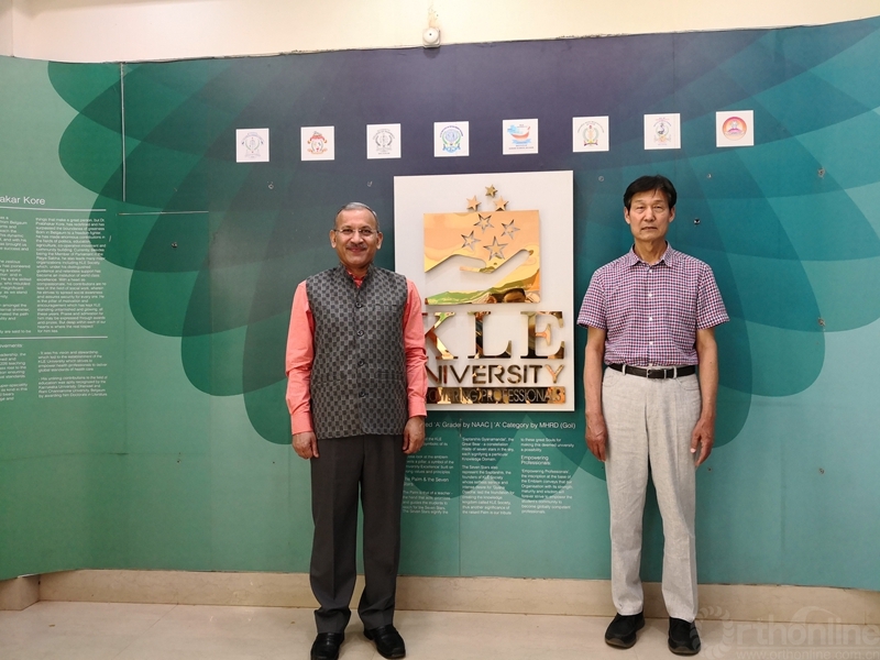 在傍晚的学术沙龙上,印度骨科学会贝尔高姆分会主席将秦泗河教授请到前台,亲自为之披上“袈裟”,并颁发纪念证书。KLE大学医学院附属医院两位骨科主任极力邀请秦教授前往参观,因为当地历史上尚无中国专家来访的先例,所以KLE大学校长专门安排接见,并为中国专家颁发了刻有KLE大学校徽的牌匾。谈话中,校长表示希望与中国医学教育展开访问交流,秦泗河教授承诺回国后在中国的医科院校协助牵线搭桥。
