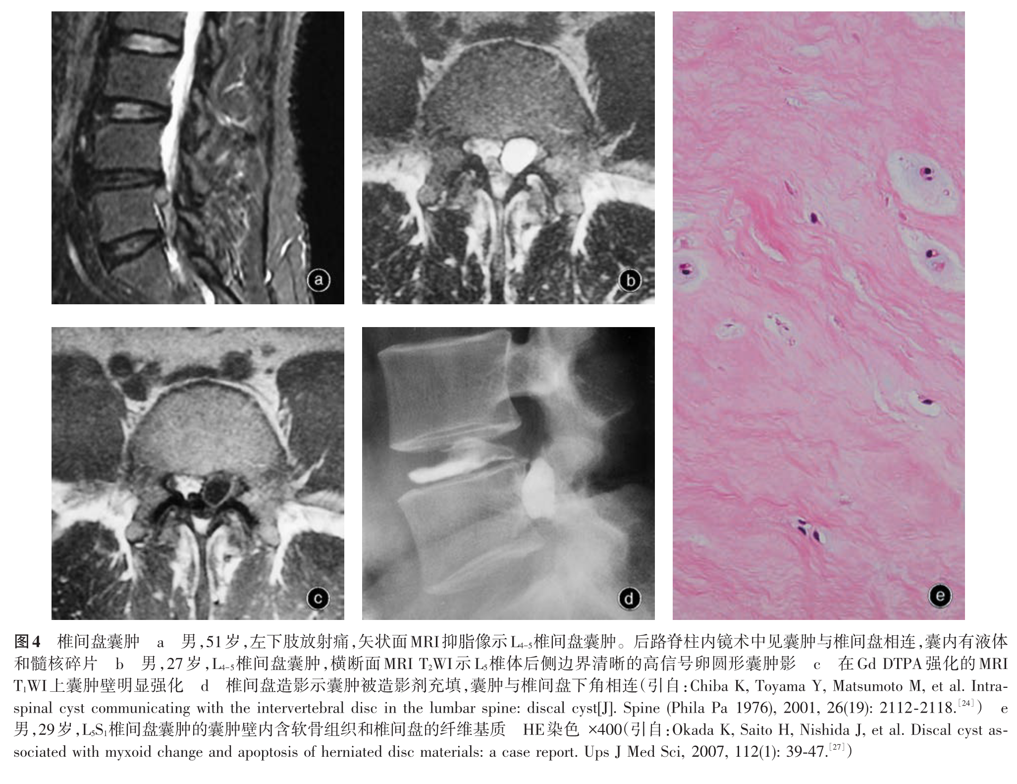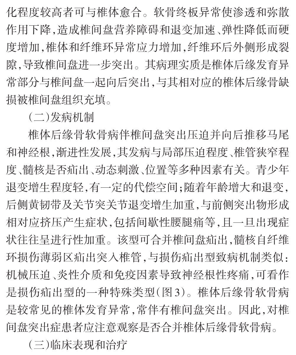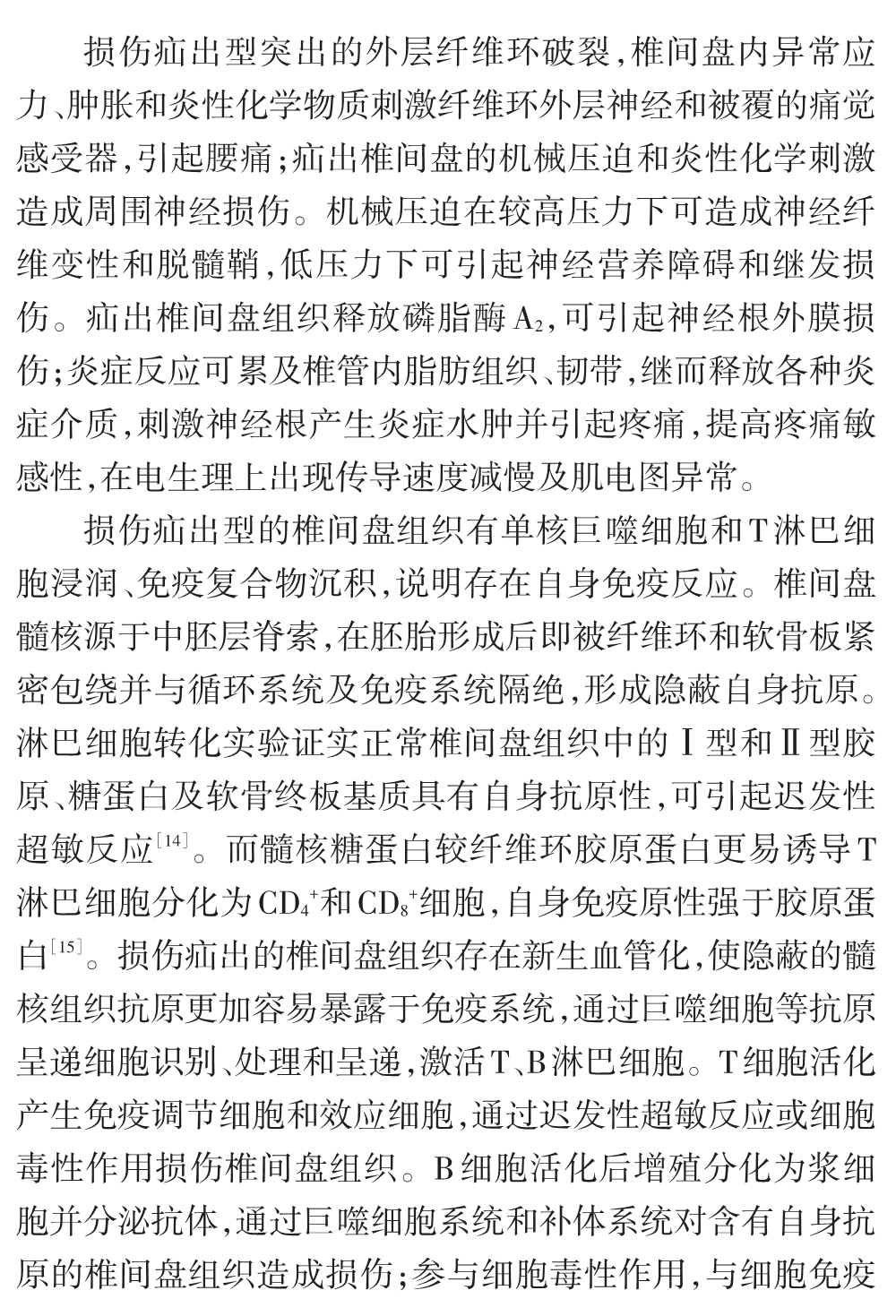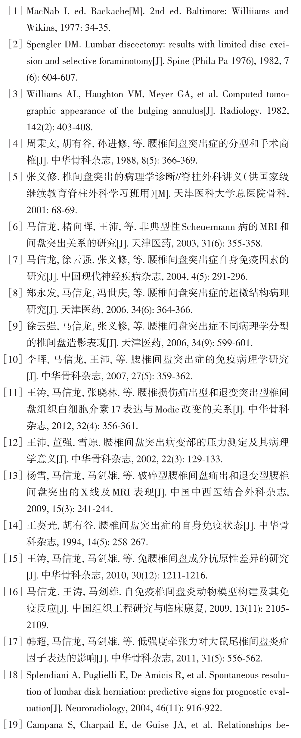 腰椎间盘突出症是骨科常见病及多发病,其病因包括内源性因素(遗传、发育、退变)和外源性因素(应力、营养、劳损、外伤等),但具体发病机制尚未完全阐明。腰椎间盘突出是描述形态学的术语,其分类大多也是基于影像学上的突出部位和形态。但临床症状的性质和轻重并不完全取决于突出形态,还与椎间盘突出的病理学变化密切相关。因此,腰椎间盘突出症的分型不应拘泥于影像学分型,而要考虑不同的病理变化和类型。