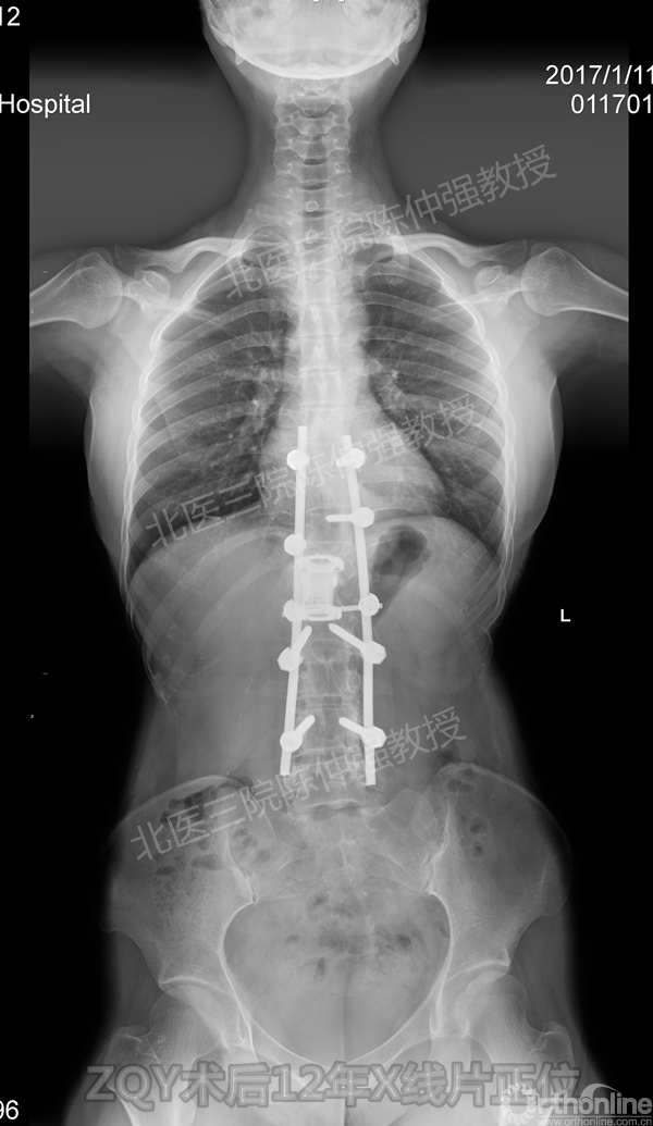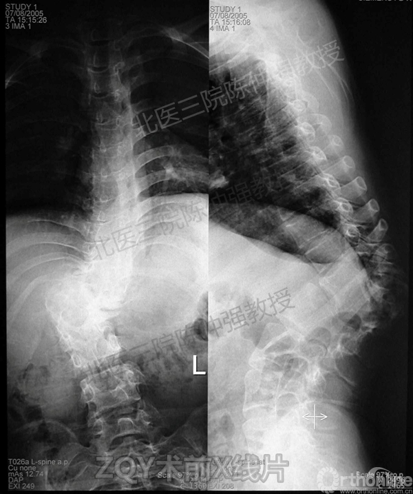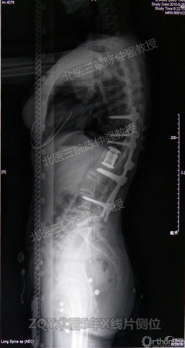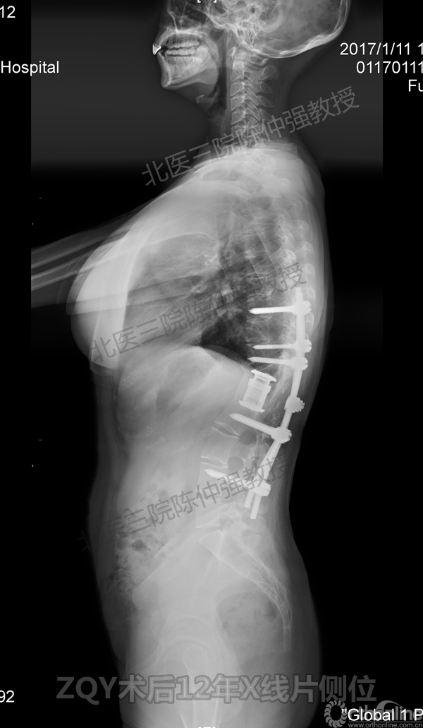 2005年,陈仲强教授在AOSpine年会上分享了一例胸腰椎陈旧结核性侧后凸畸形病例。资料如下: