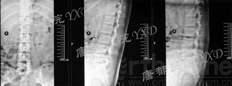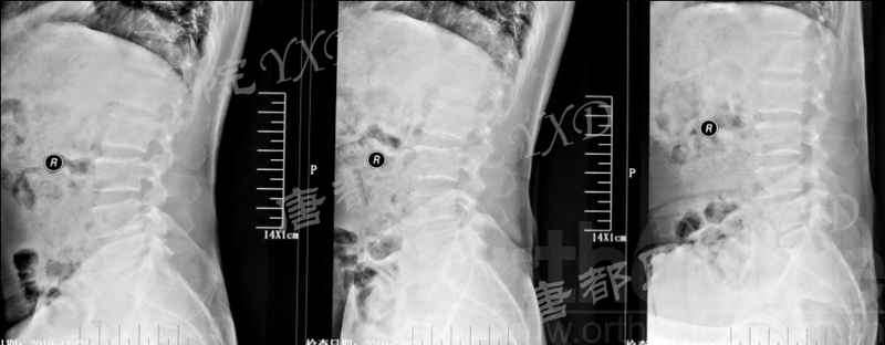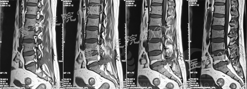 术后疗效:VAS评分右下肢1~2;腰2;右侧直腿抬高试验、加强试验阴性;行走自如、步态无异常。