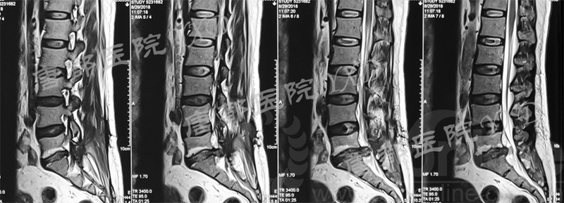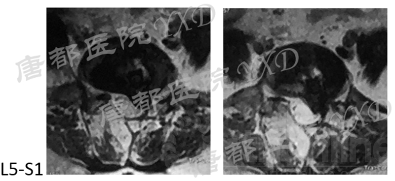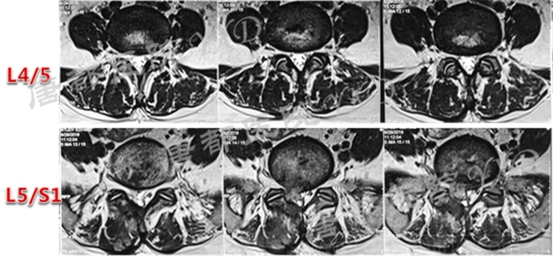 既往于半年前因“腰椎间盘突出症(L4-5)”于外院行腰椎侧路脊柱内镜下髓核摘除术(L4-5)。后因症状复发,分别在2周前、10天前于外院行两次腰椎后路脊柱内镜下髓核摘除术(L4-5)。