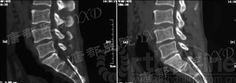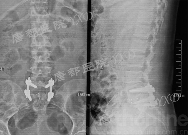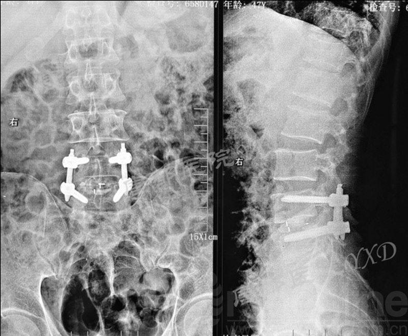 既往8年前因“腰4、5椎弓峡部裂并腰4椎体滑脱症”于外院行腰4~骶1椎板减压椎间植骨融合内固定术,后因椎弓根螺钉断裂于5年前行内固定取出术。