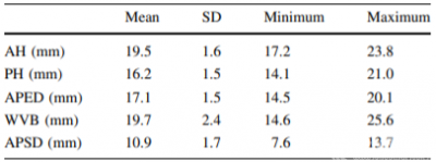 使用精确到0.1毫米的数字卡尺测量的(Mitutoyo Corp;Tokyo,Japan)来进行所有的线性测量,角度测量使用精确到1°的量角器进行记录。