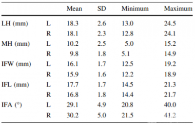 All linear measurements were obtained using a digital caliper accurate to 0.1 mm (Mitutoyo Corp; Tokyo, Japan) and the angular measurements were recorded with a goniometer accurate to 1.
