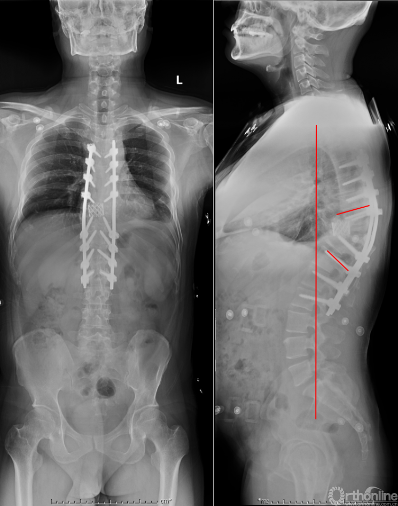在备受折磨的患者苦苦央求下,丁文元教授为解决患者病痛,立即召集多科室进行会诊,在确认患者的心、肺、脑功能可以负担手术及麻醉后,为患者进行了腰椎切开复位固定融合术,术后患者腰腿疼缓解,日常活动均可自理。