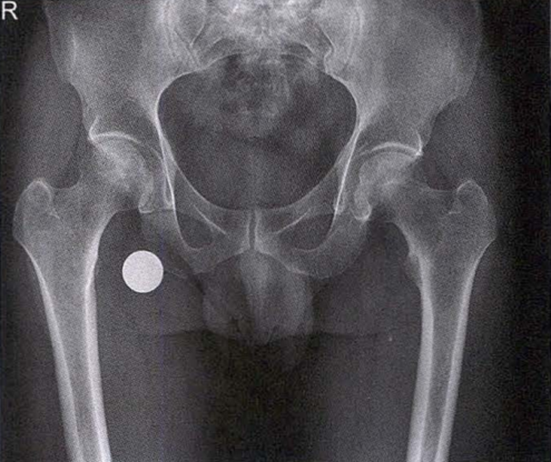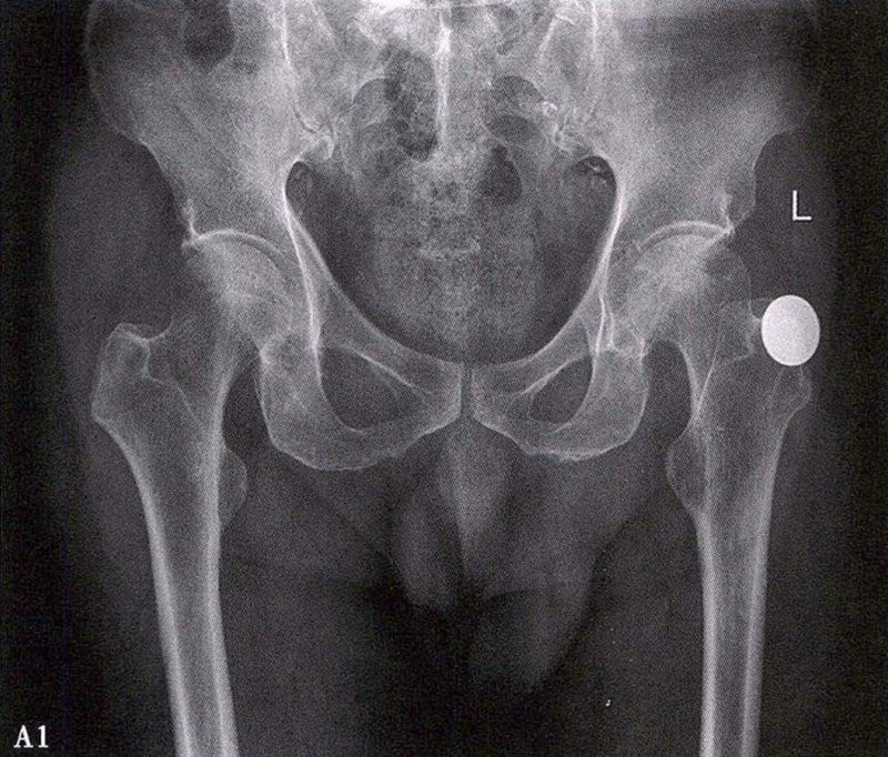 Ⅳ期:X线片显示股骨头变扁,关节间隙变窄,髋臼出现硬化、囊性变和骨赘。