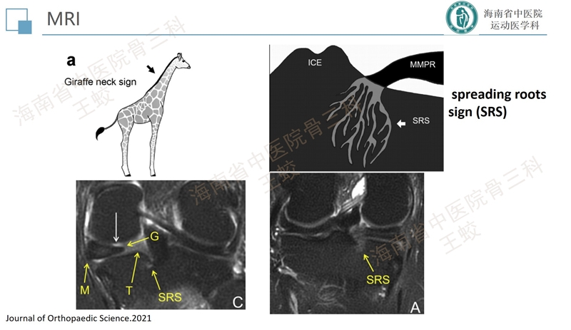 2、慢性、退变性根部撕裂(MMPRTs常见),可能合并有半月板的外突。
