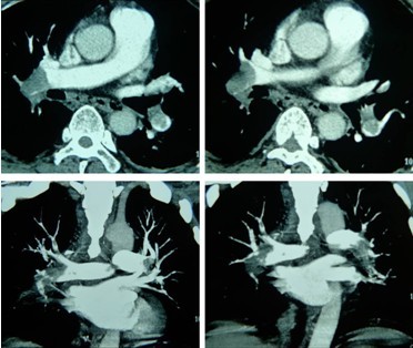 图4. 2009.9.1复查肺动脉造影示:双侧肺动脉附壁血栓,栓塞情况明显好转