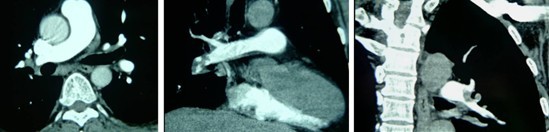 辅助检查:2009.8.21白细胞:16.07×10^9/L,中性粒细胞百分 率:90.7%;D-二聚体为7.909mg/L;肺动脉造影示:双肺动脉主干,双侧下叶,右肺中叶,左肺上叶动脉分支梗塞(图2);而双下肢血管B超、 双侧髂静脉B超及下腔静脉造影(图3)未见异常。心超示:右心室轻度偏大,肺动脉压力51mmHg。