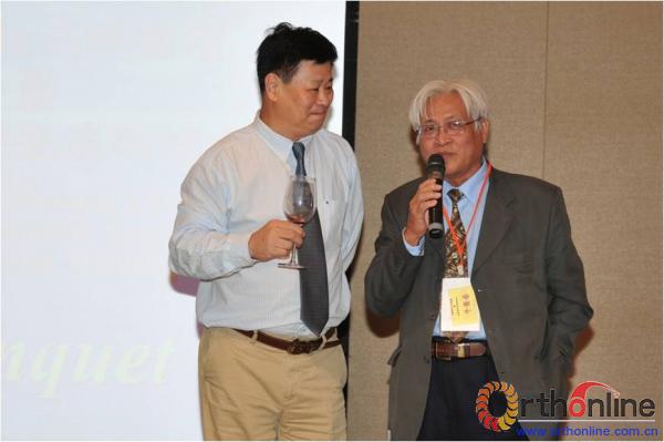 山东大学齐鲁医院骨科李明教授和来自越南的Vo Van Thanh教授一起在晚宴上祝酒