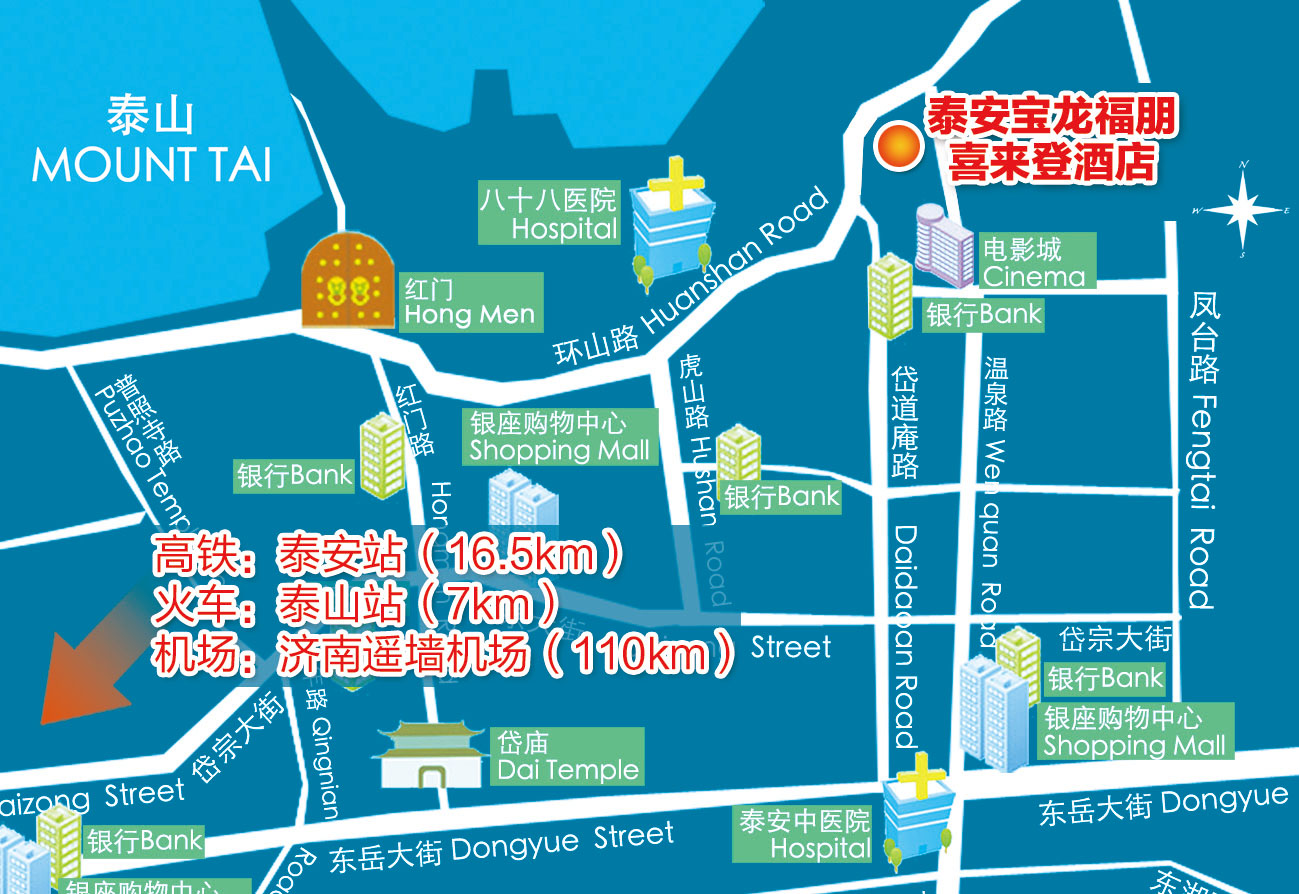 打车至酒店约16.5公里;或由泰安高铁站乘坐k37路,在三合水厂站下车,步行230米至泰安宝龙福朋酒店