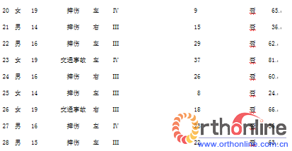 表Ⅰ.病人的人口学特征及临床结果(FVFG,吻合血管腓骨移植)