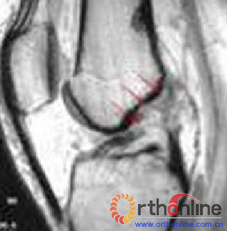 3.影像学表现:核磁共振成像(MRI)因其有高对比度、高分辨率、无创伤性和多切面成像等优点,成为膝关节交叉韧带损伤诊断的最理想的检查方法(。MRI不仅可清楚显示ACL正常形态,还可显示损伤ACL撕裂部位、范围及合并骨折、半月板撕裂及侧副韧带损伤等情况。