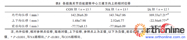3.3 各组受试者肩关节功能中心(FJC)位移的比较