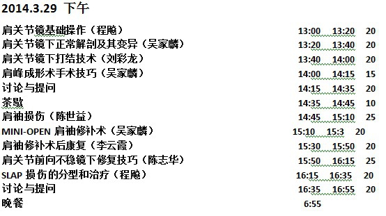 由中华医学会骨科学分会关节外科学组主办,上海交通大学医学院附属新华医院承办的第二届上海肩关节外科基础学习班定于2014年3月28-30日在上海举行。学习班将邀请中美资深专家就该领域的基本理论、技术和操作方法的最新进展进行专题传授和探讨,学习内容强调实用性和可操作性。特别欢迎参会者携带疑难病例(电子版)现场教学互动讨论,请提前和会务组沟通。学员在课程结束后可获得国家I类继续教育学分10分。
