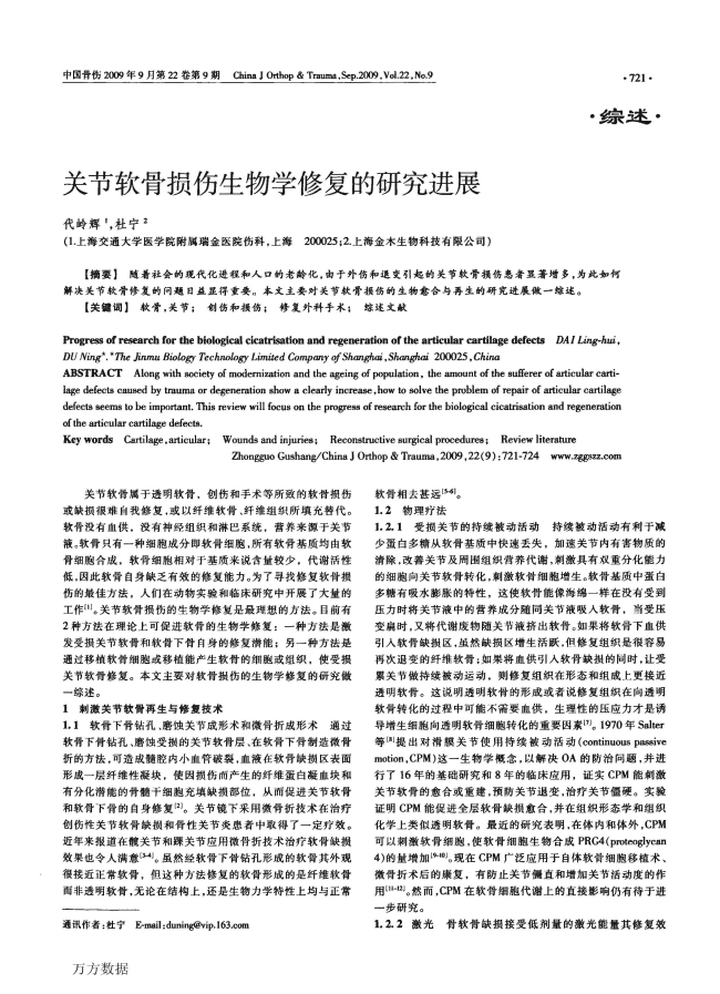 2013-05-30 文章来源:代岭辉 上海交通大学医学院附属瑞金医院伤科 杜宁 上海金木生物科技有限公司 我要说