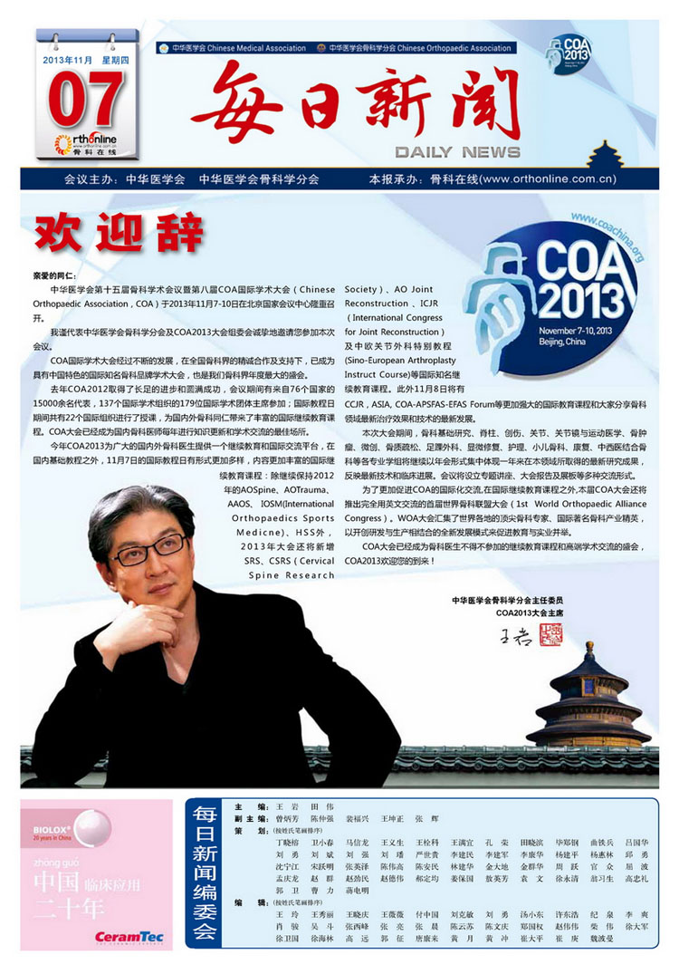 电话:010-65279365 010-85110451 E-mail: orth@orthonline.com.cn