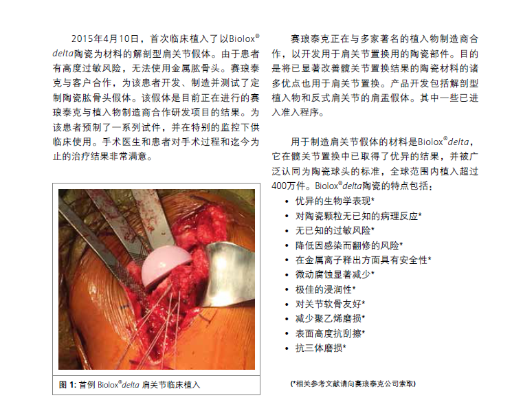 首例Biolox®delta肩关节假体临床植入